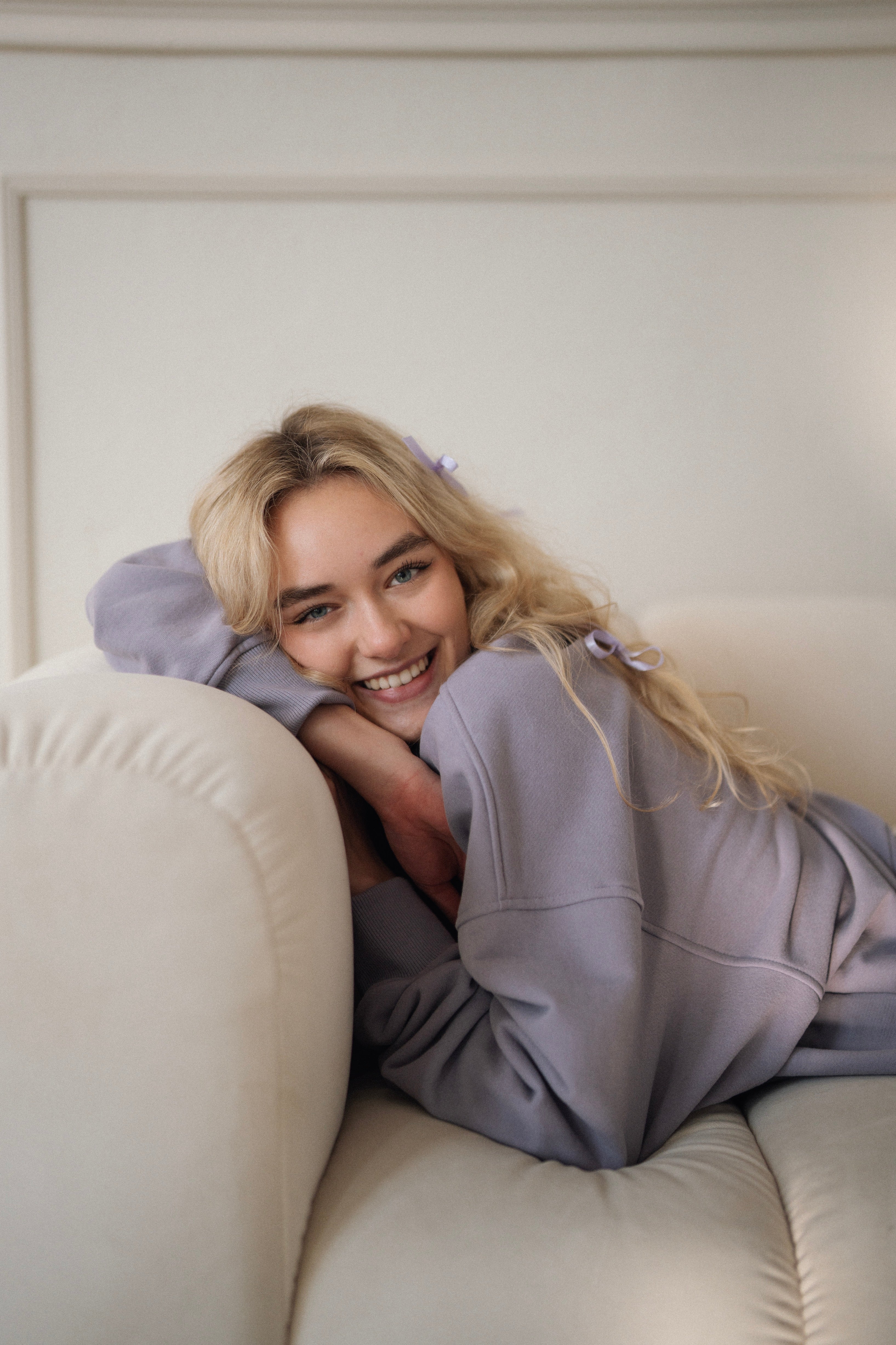 Lawendowa bluza ADÈLE to więcej niż basic. To codzienna przyjemność noszenia i mały manifest stylu – delikatnie, ale z charakterem.