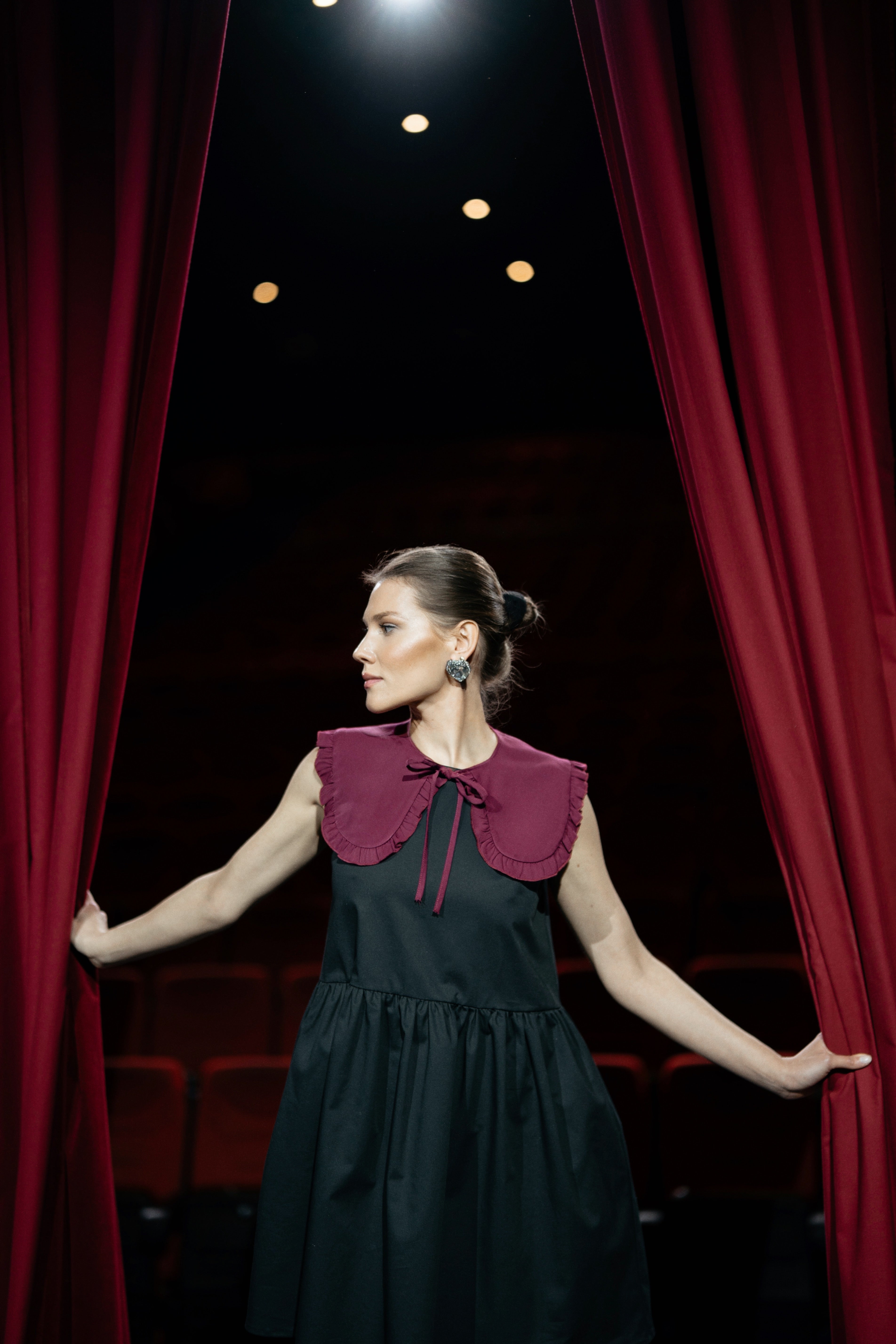 Bordowy kołnierzyk EDDY to mały dodatek o ogromnej sile. Uszyty z miękkiej, eleganckiej wiskozy i ozdobiony delikatną falbanką, natychmiast dodaje stylizacji charakteru: romantycznego, dziewczęcego, ale wciąż absolutnie współczesnego.