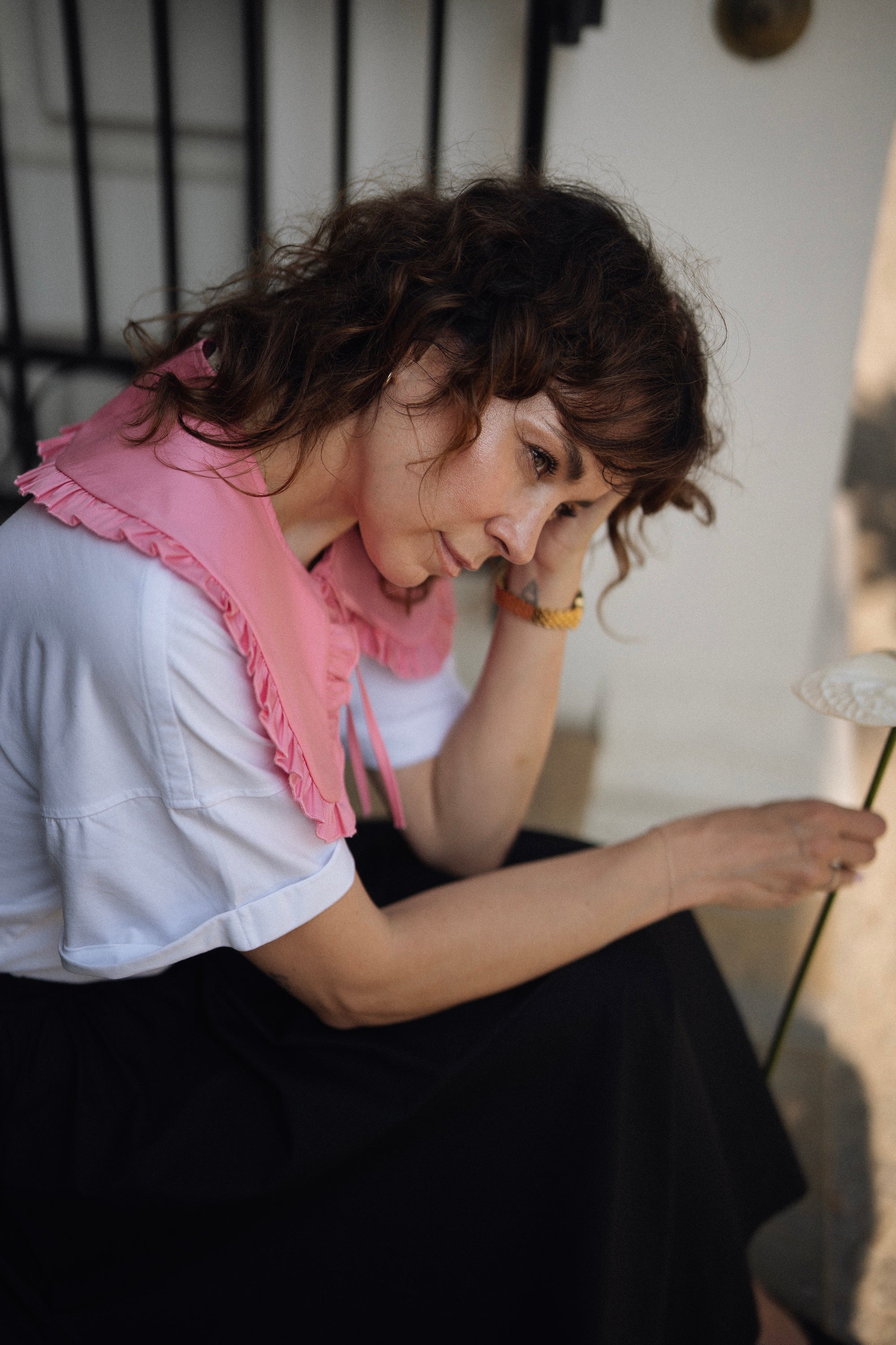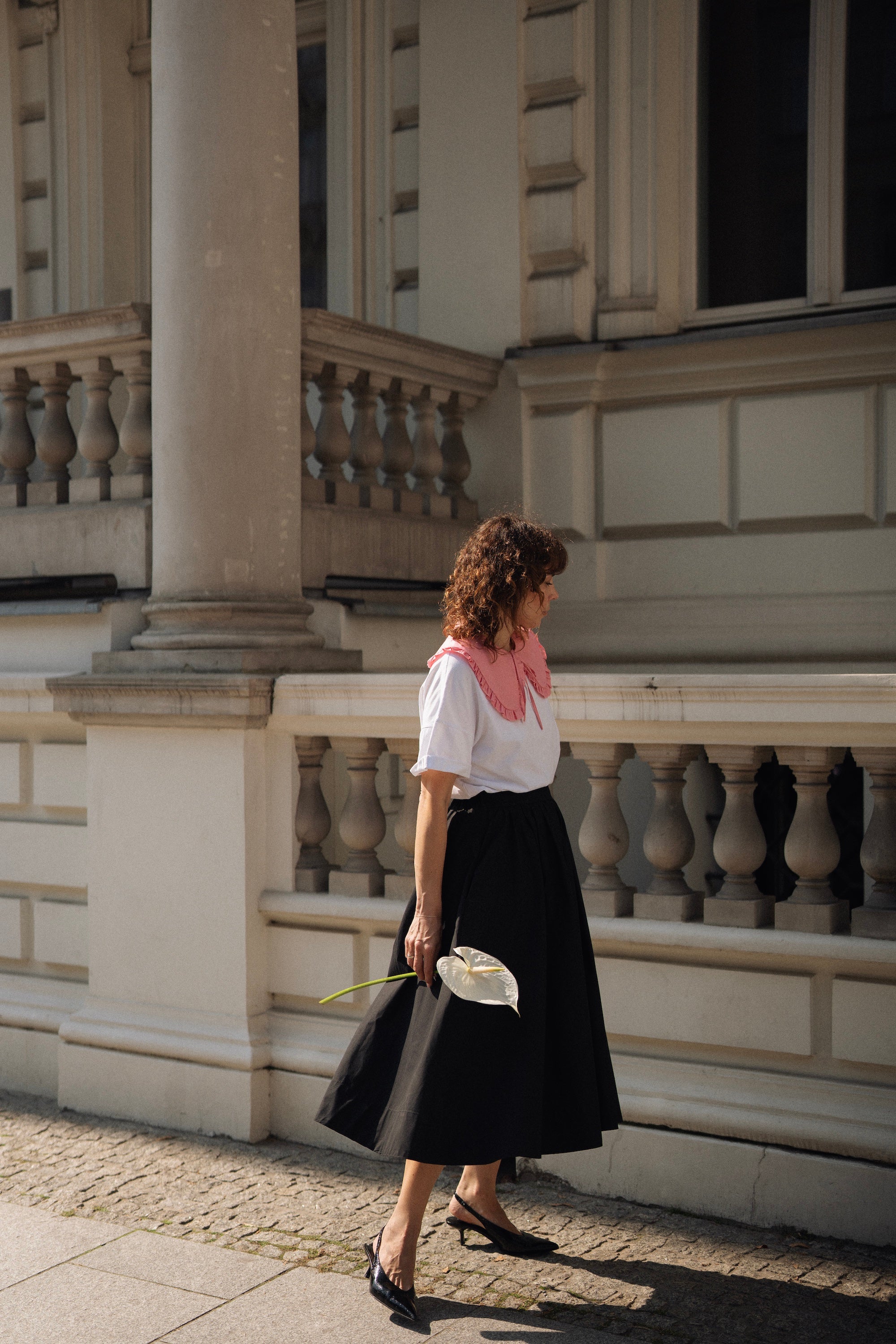 Wykonany z wysokogatunkowej bawełny, wykończony subtelną falbanką i przewiązany u szyi — Zuzu w różu odmienia każdą stylizację. Nawet najprostszy T-shirt lub sweter nabiera elegancji i wdzięku w kilka sekund. Odkryj jego moc: noś go z oversize’ową marynarką, jeansami typu mom fit albo… solo — jak Ci się podoba.