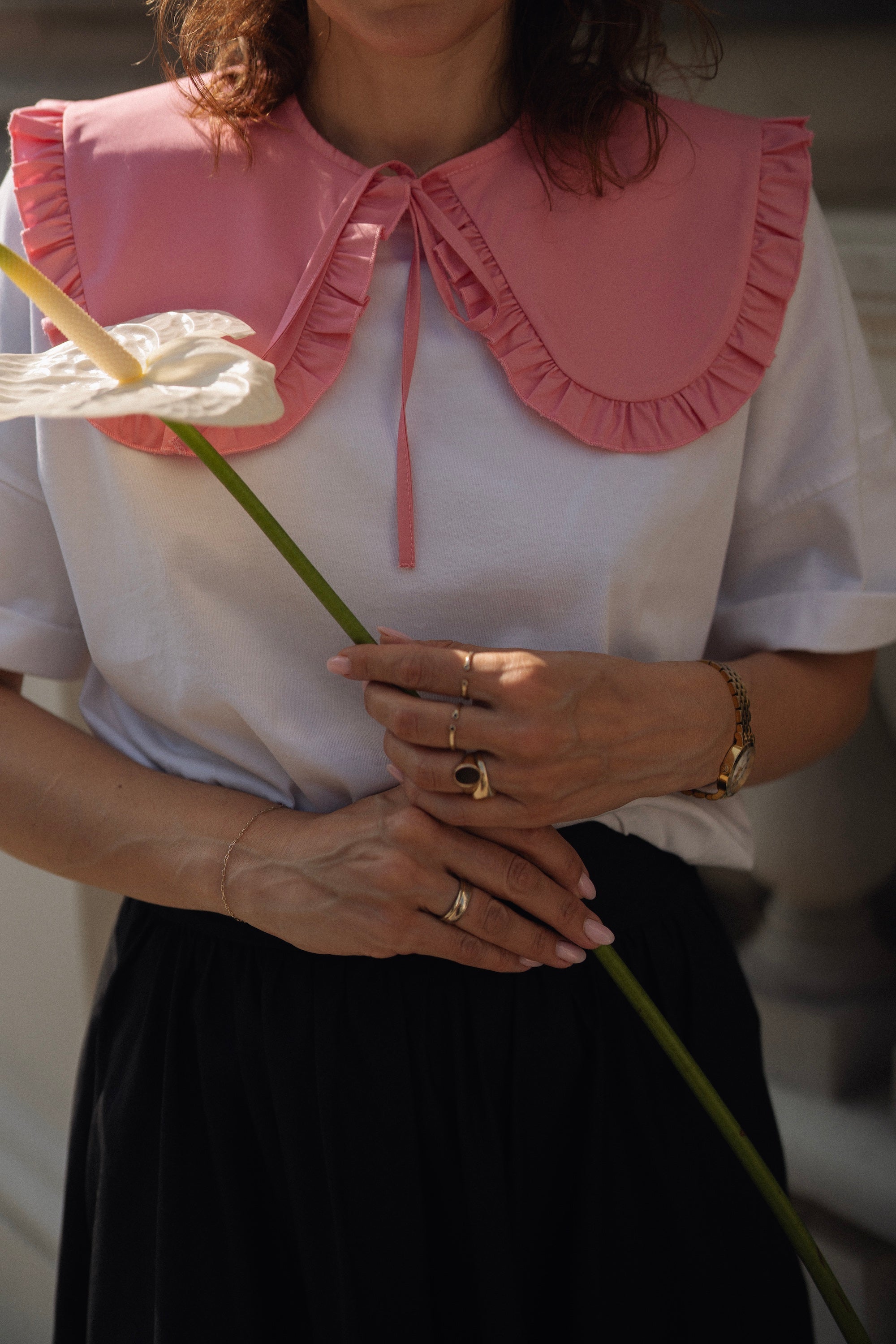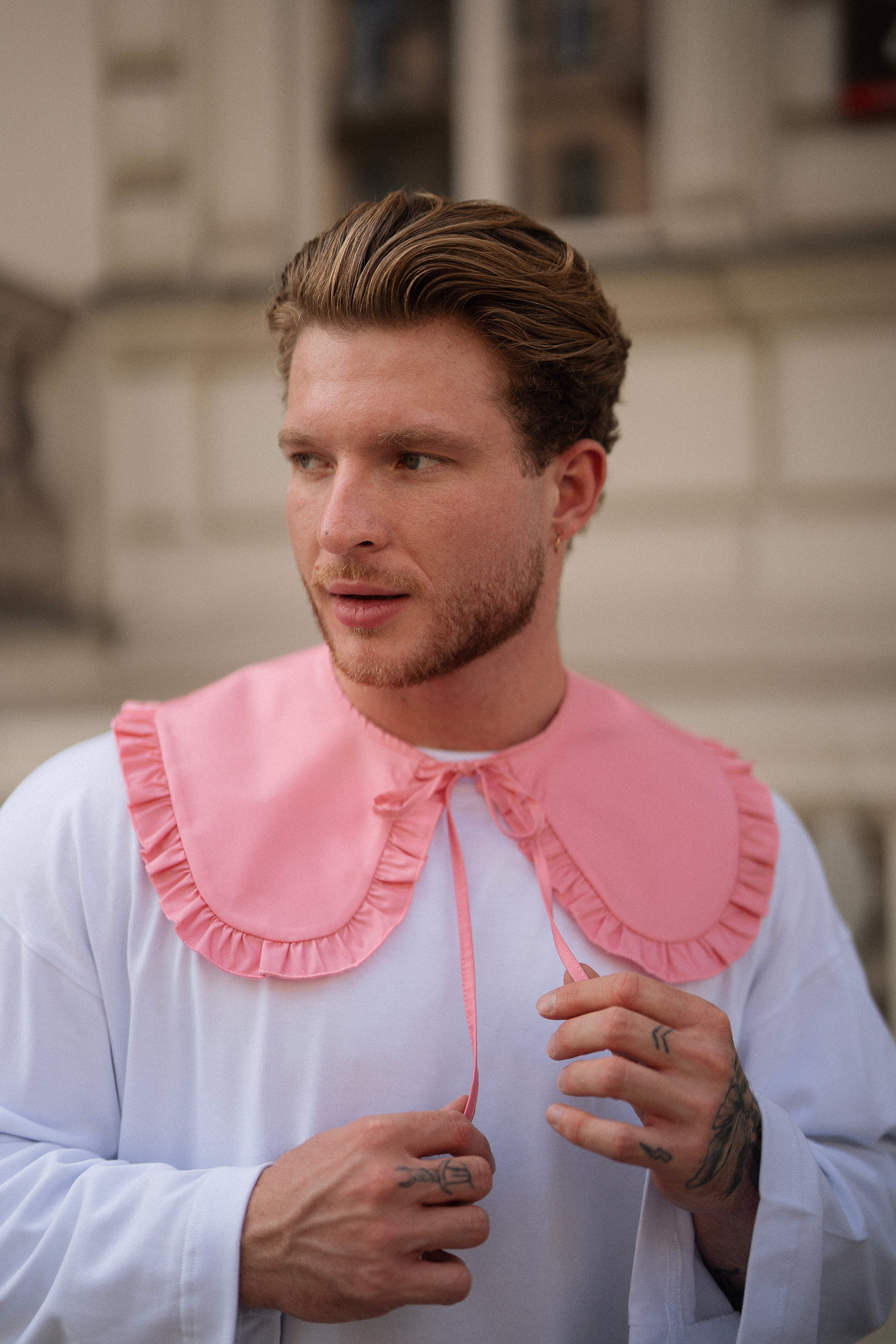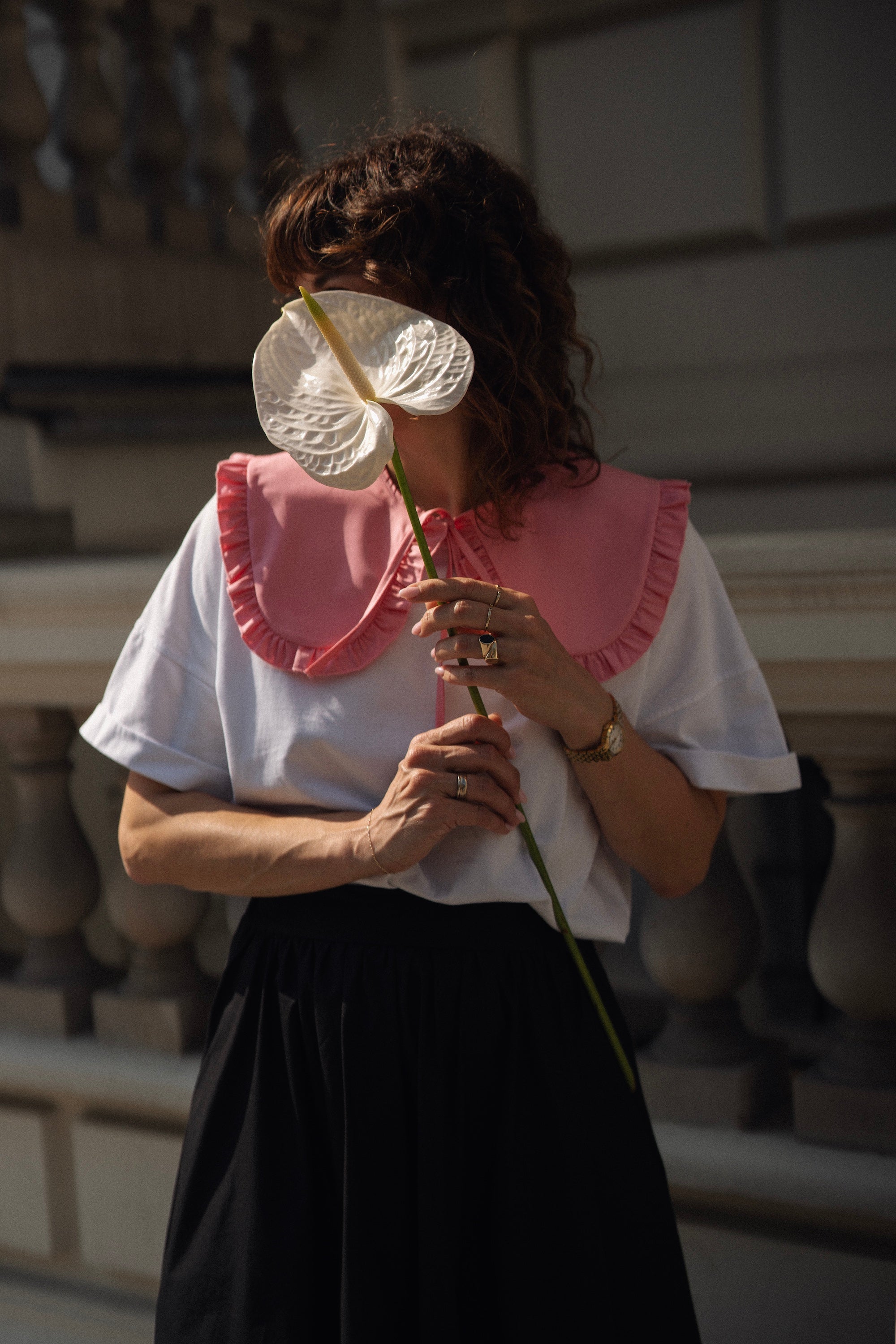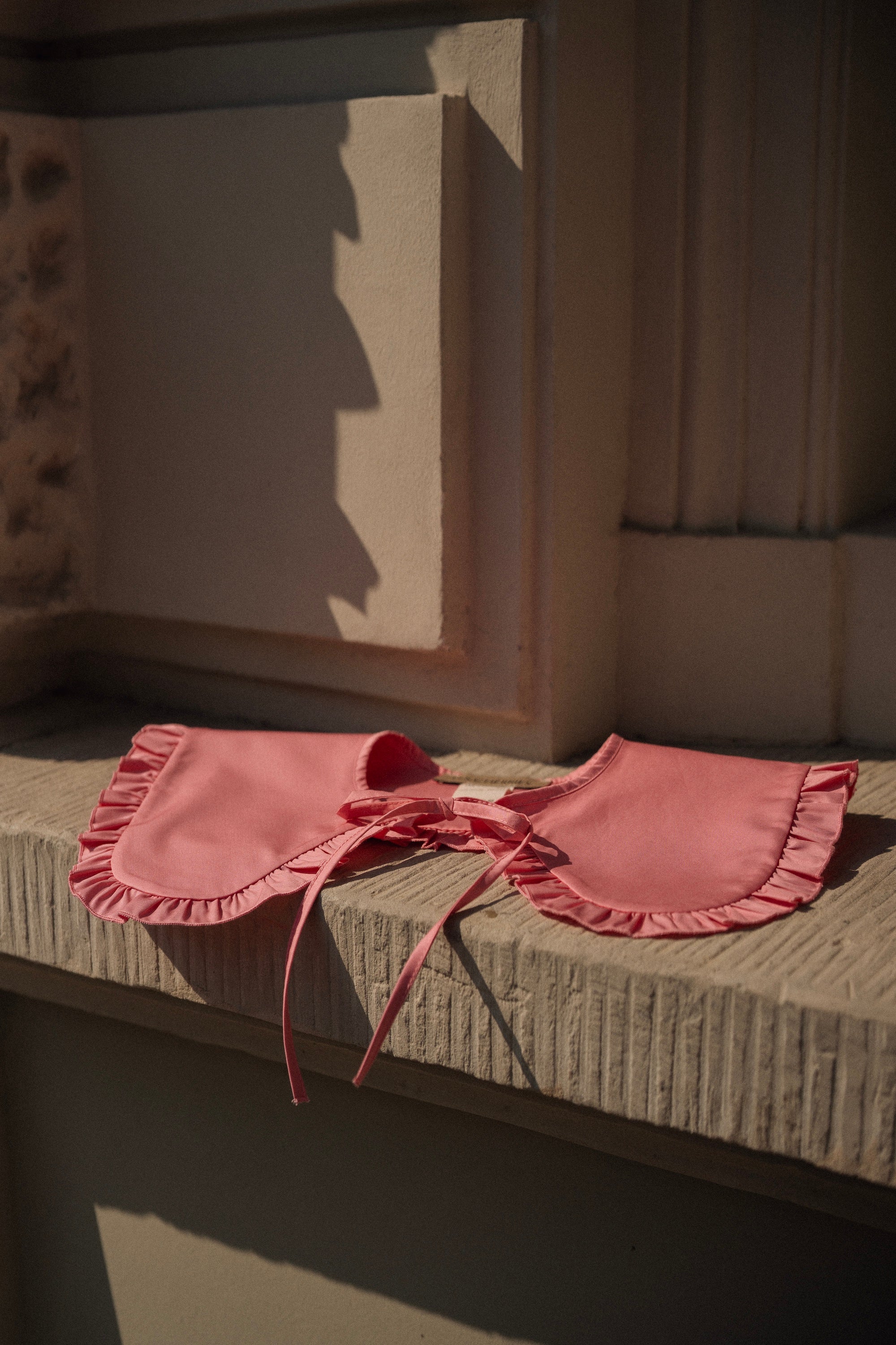 Kołnierzyk Zuzu w różu to subtelny akcent, który mówi głośno, niemal poetycki detal — lekki, kobiecy i z charakterem. Utrzymany w barwie zdecydowanego różu, przywodzi na myśl poranek w ogrodzie pełnym piwonii. Ten projekt to ukłon w stronę stylów vintage, ale z wyraźnym, współczesnym twistem — idealnie wpisujący się w paryski szyk LES CHÉRRIES.