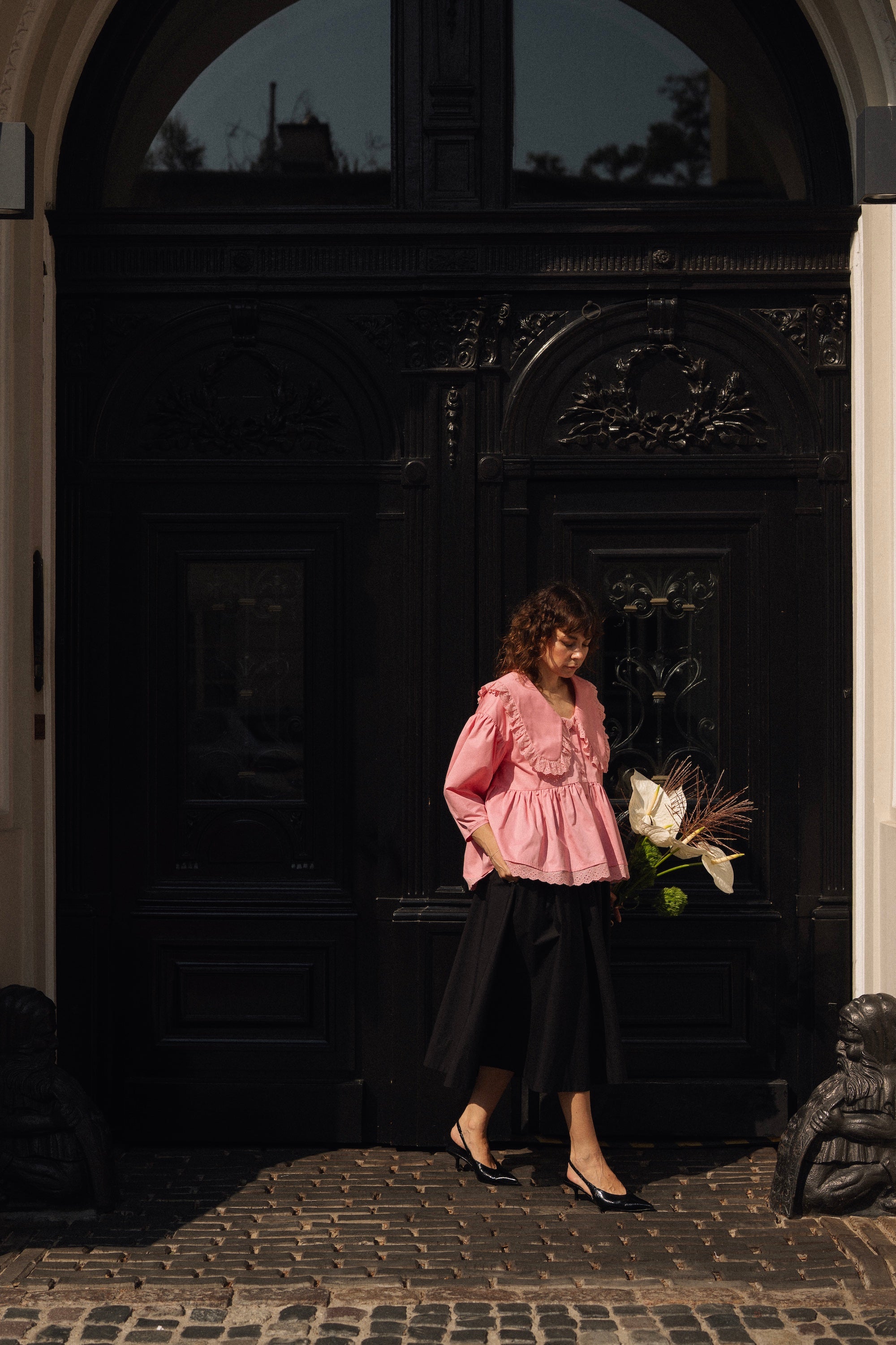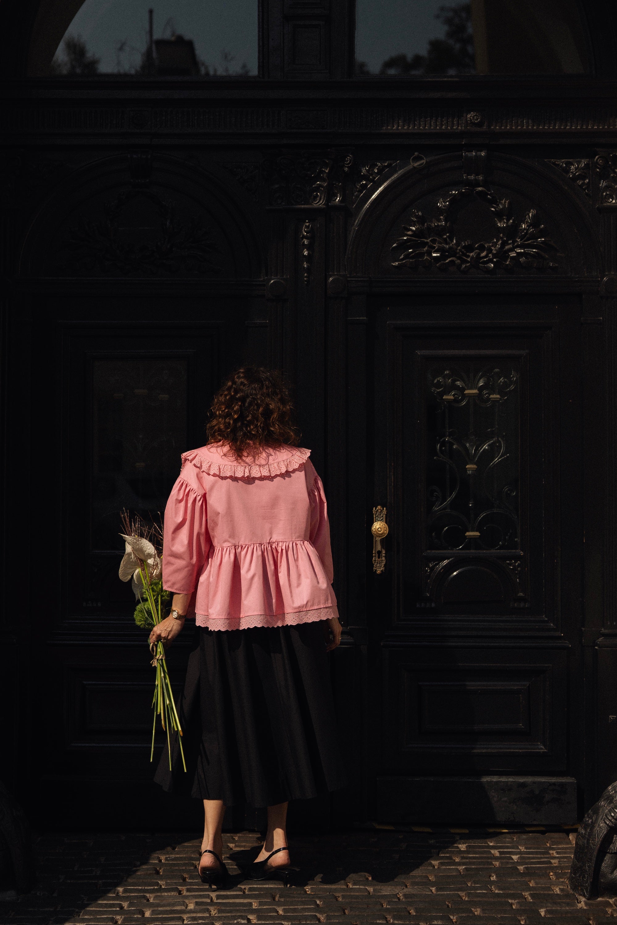 Luźny krój zapewnia komfort, a bufiasty rękaw ¾ dodaje retro uroku. Urocze, drobne guziczki robią robotę – to detale tworzą klimat. MATHILDE jest jak stylowy list miłosny do wszystkiego, co kobiece, miękkie i z charakterem.