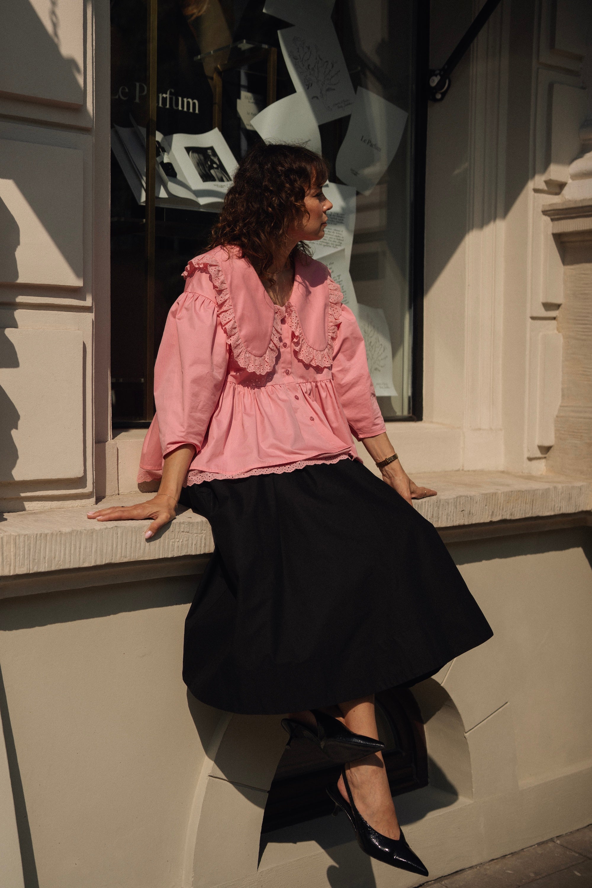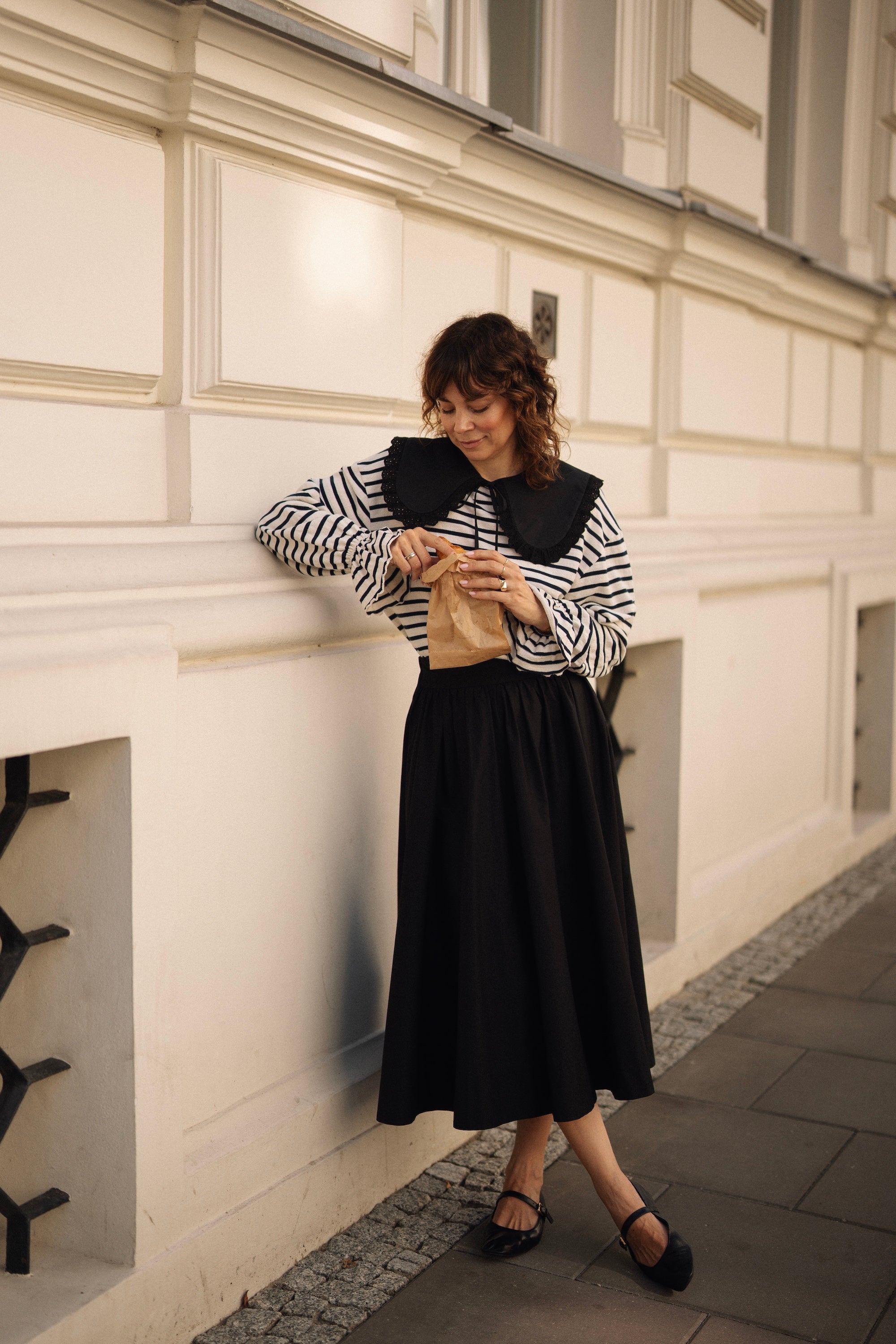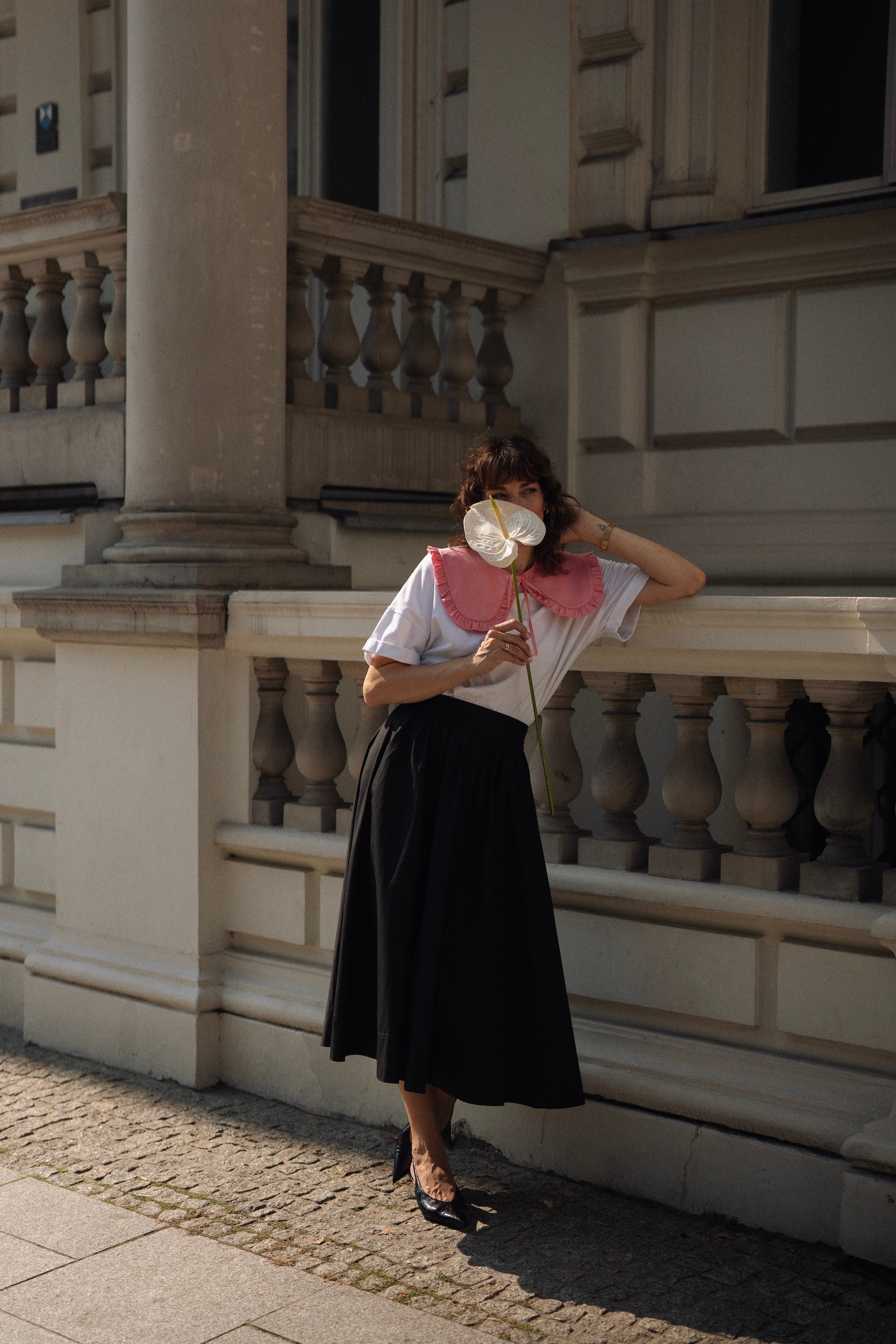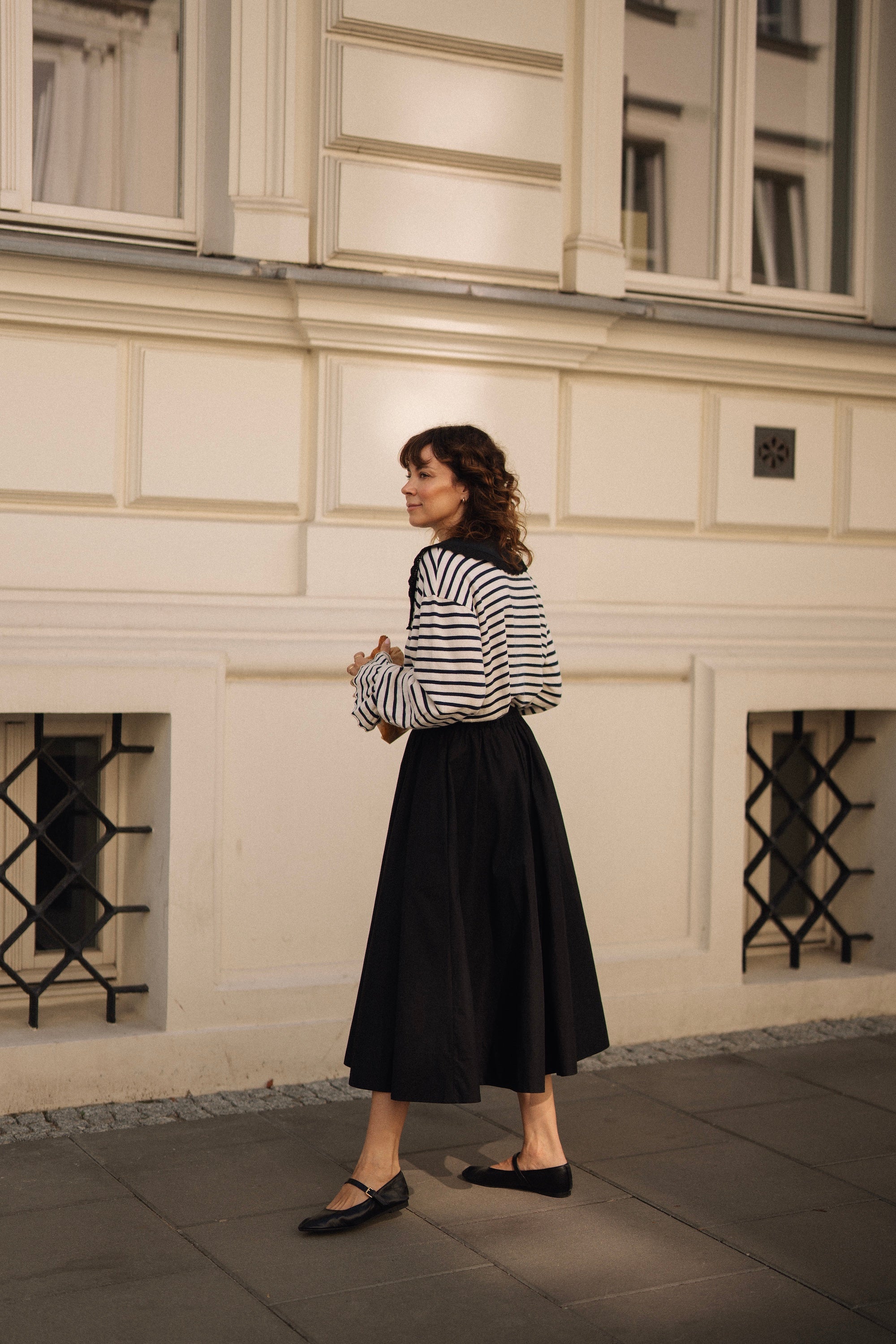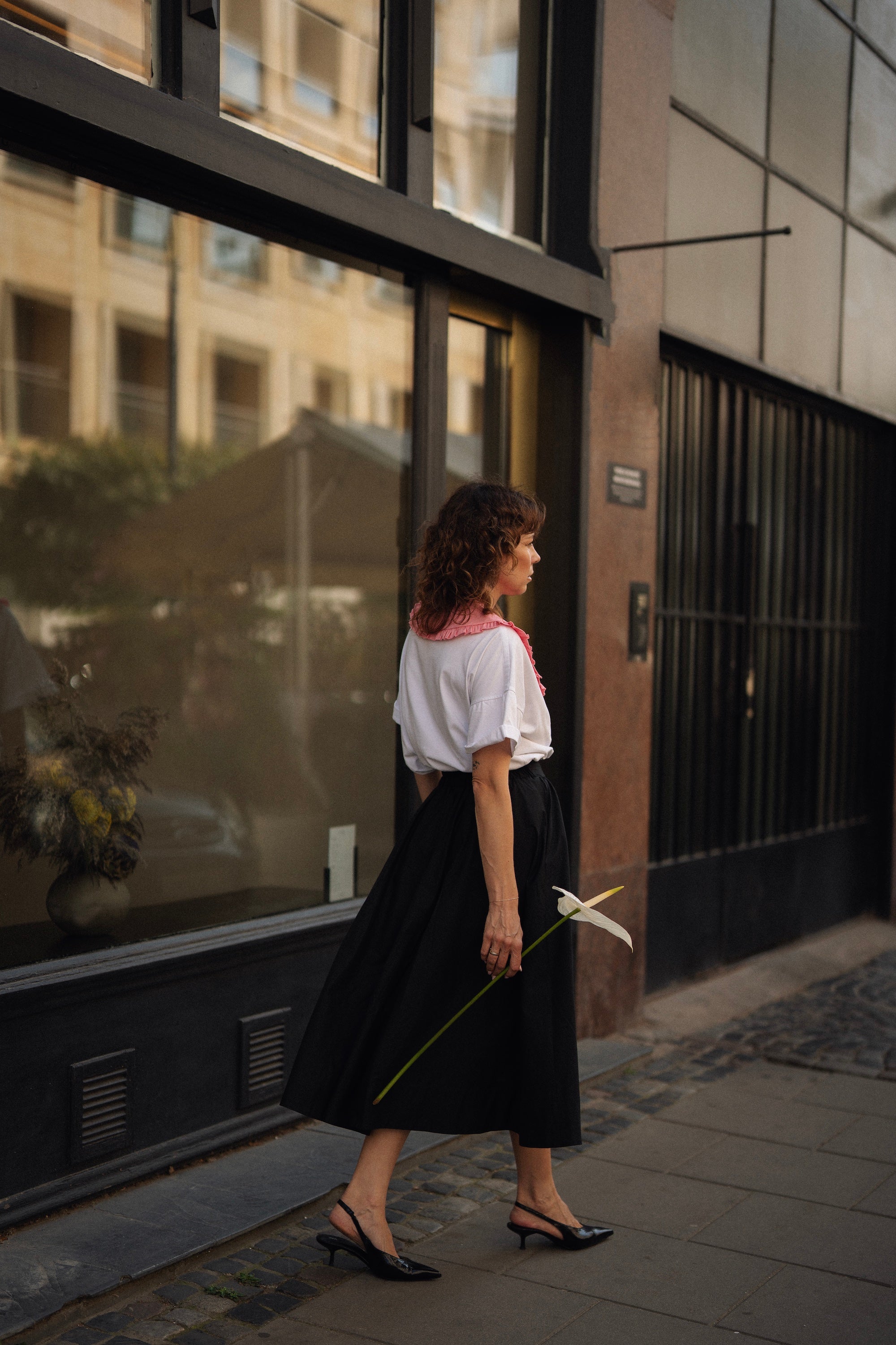 Czarna spódnica – brzmi znajomo? Ale Linda to zupełnie inna historia. Rozkloszowana, ultrakobieca i nonszalancko elegancka. Uszyta z miękkiej popeliny, pięknie układa się w ruchu, a dzięki gumce z tyłu w pasie (czyt. maksimum komfortu, zero kompromisów!) dopasowuje się idealnie do sylwetki. No i ten detal, który kochamy najbardziej – kieszenie. Bo przecież styl i wygoda mogą iść w parze!